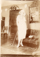 Photographie photo amateur snapshot femme mode robe canne salon intérieur