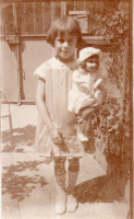Photographie photo amateur snapshot Maria Bauffan poupée doll enfant fille